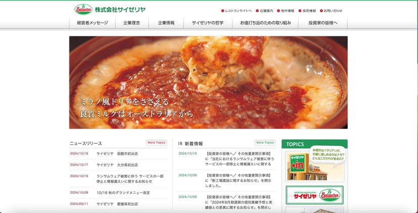 株式会社サイゼリヤは10月16日、同社サーバへ第三者からのランサムウェア攻撃について発表した。